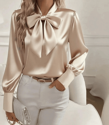 Az eleje egyszerű és elegáns marad, így tökéletes munkanapokra és formális alkalmakra is. A masni finom hangsúlyt ad, miközben az összhatás minimalista és professzionális. Könnyedén kombinálható szabott nadrággal, ceruzaszoknyával vagy egyenes szárú farmerrel.